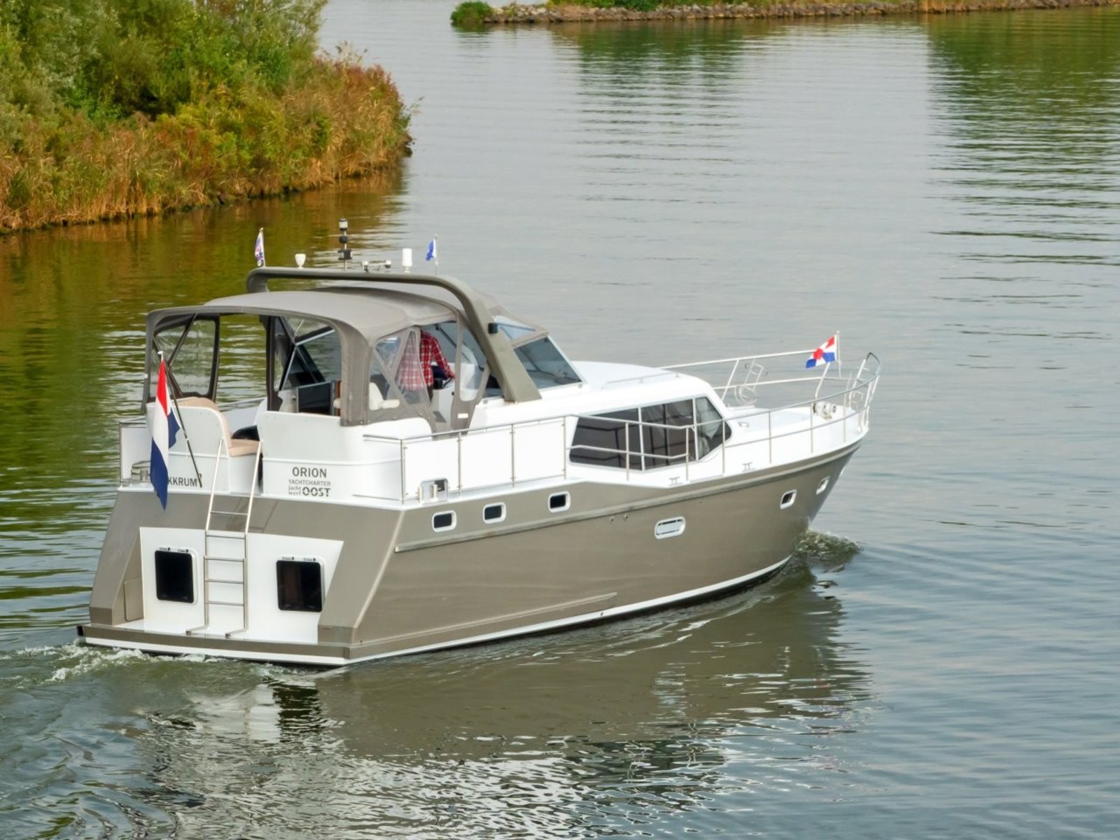 Huur nu onze Nowee Novi 42 "Orion". Een mooi en ruim schip en ideaal voor grote gezinnen. Met de verwarmde XXL achter tent vaart u het hele seizoen comfortabel.